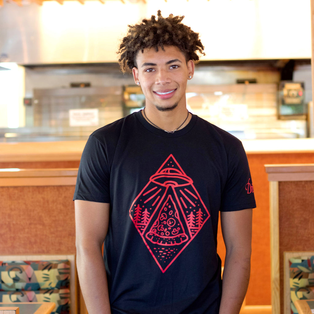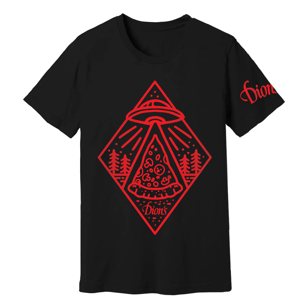 A UFO beaming up Dion’s pizza? It could happen! This shirt commemorates our location in Roswell, New Mexico.