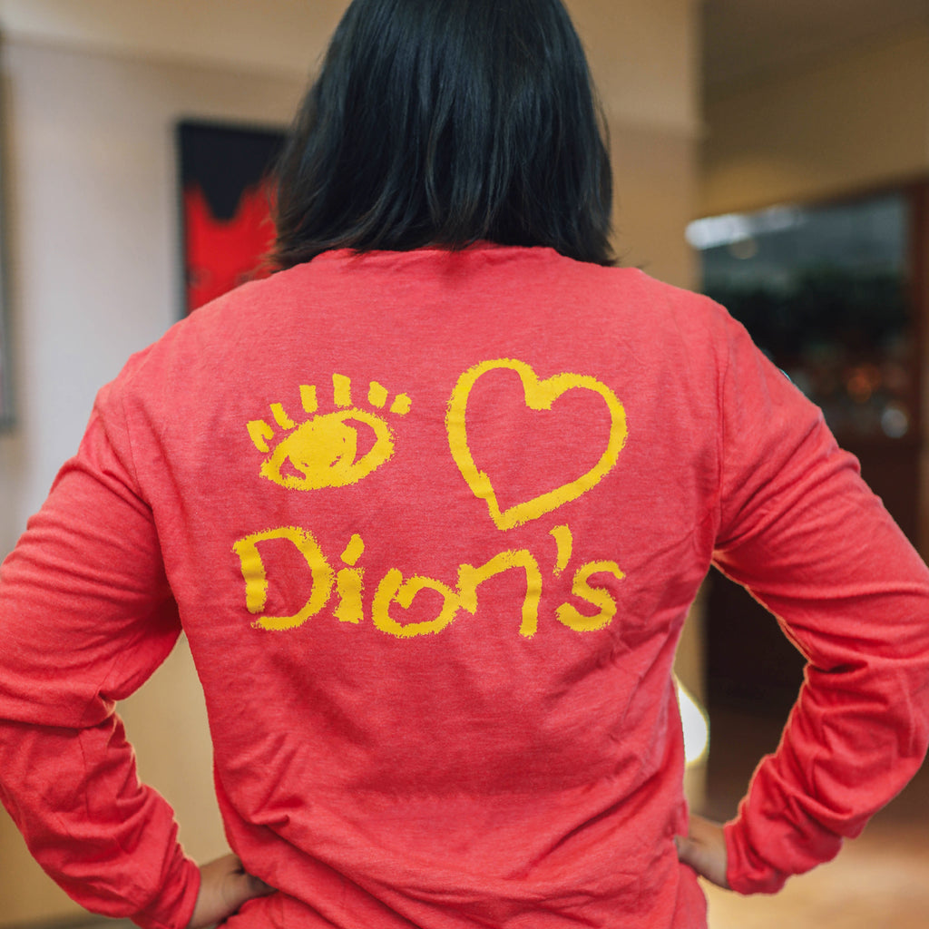 For years, this classic shirt was a rite of passage for kids, as it was a sign they had been on a field trip to Dion's. Now available to adults looking to relive their childhood in a vintage red long-sleeve.